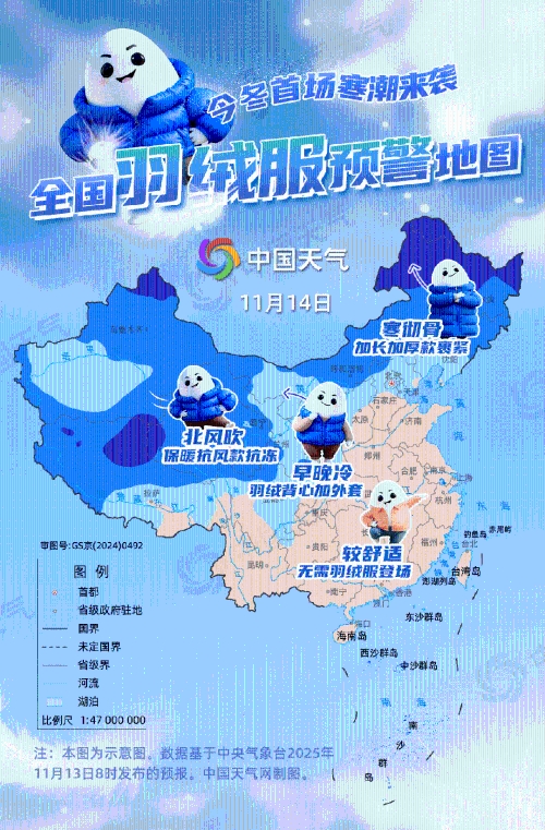 📢专家提醒,此次寒潮过程气温下降明显,易引发心脑血管、呼吸道、感冒等疾病,公众需做好相关健康防护工作。另外,北方和中东部地区阵风风力大,公众外出需远离临时搭建物、广告牌等危险区域,谨防高空坠物。